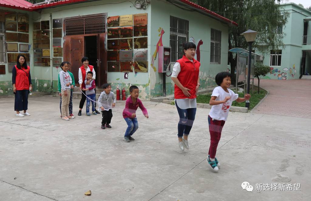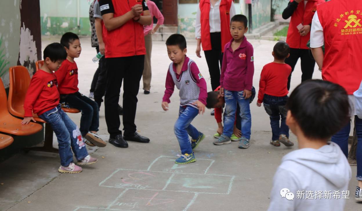 課余時間大家和孩子們一起玩起了跳房子其樂融融
