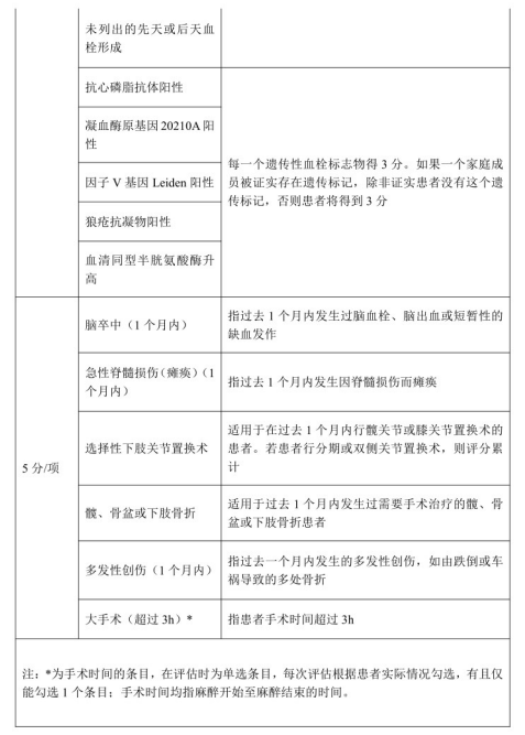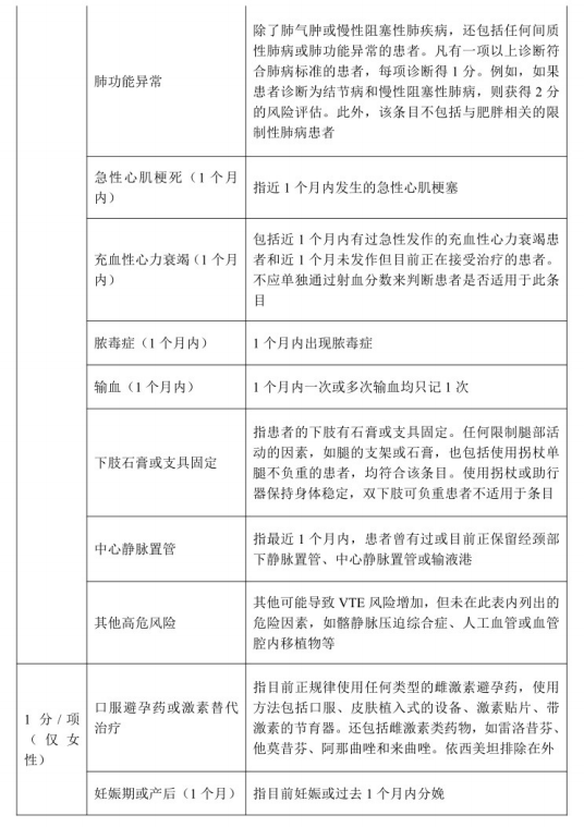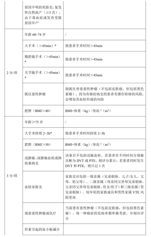 --獲得性風(fēng)險因素:高齡、肥胖、活動性惡性腫瘤、抗磷脂抗體綜合征、既往VTE史、VTE家族史、獲得性易栓癥、急性心肌梗死和(或)缺血性腦卒中、正在進(jìn)行激素治療,近期(≤1個月)創(chuàng)傷、近期(≤1個月)外科手術(shù)、急性感染和(或)風(fēng)濕性疾病,急性內(nèi)科疾病住院、制動(需臥床休息至少3天)、內(nèi)科重癥患者、心臟和(或)呼吸衰竭。