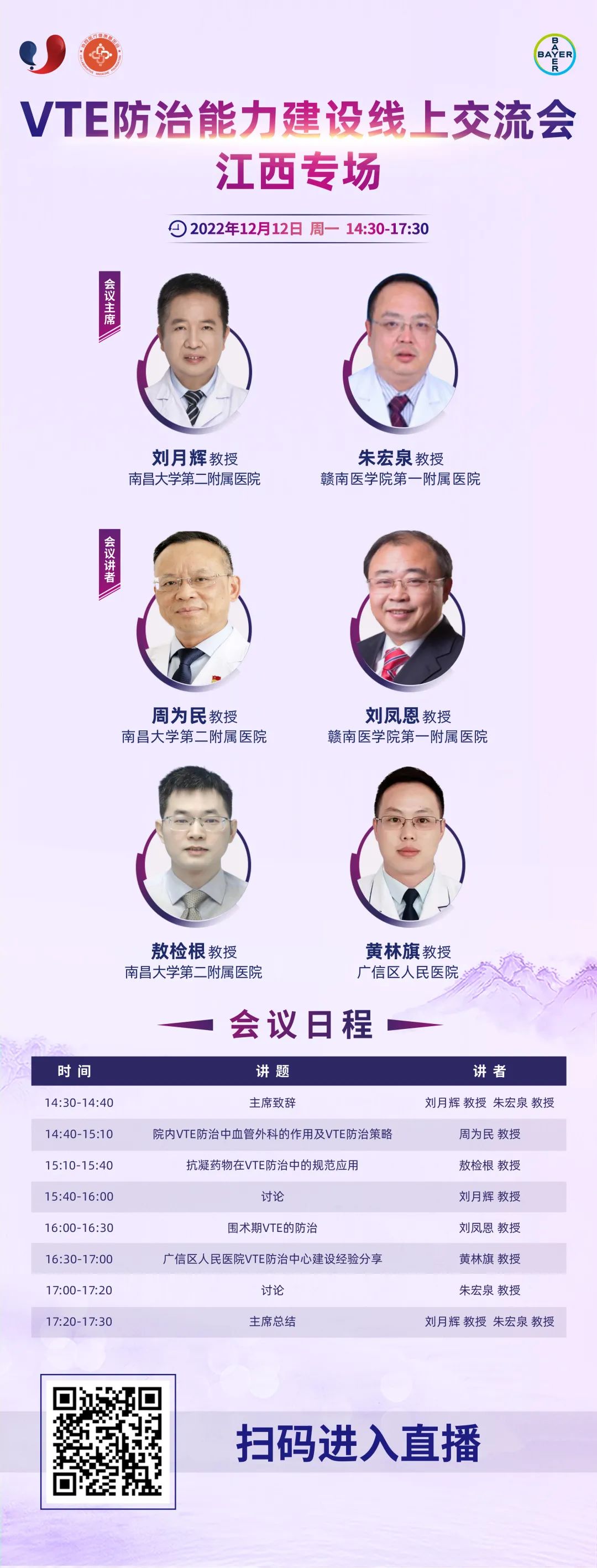 為進(jìn)一步促進(jìn)全國(guó)各醫(yī)院 VTE 防治體系建設(shè)的規(guī)范化與同質(zhì)化,進(jìn)一步推進(jìn)全國(guó)規(guī)范、同質(zhì)化的VTE項(xiàng)目開展,全面提升江西省醫(yī)院內(nèi)VTE防治水平,“VTE防治能力建設(shè)線上交流會(huì)江西專場(chǎng)”將于2022年12月12日召開。